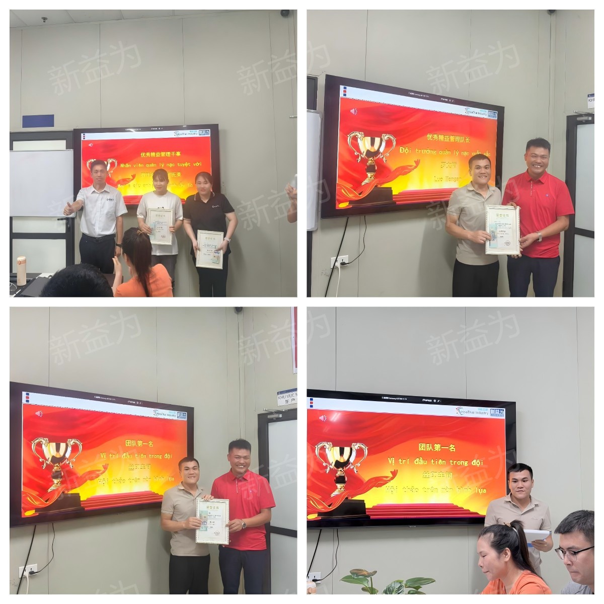 公司高層領(lǐng)導(dǎo)為獲獎團隊與個人頒發(fā)榮譽證書,鼓勵全體員工以先進為榜樣,持續(xù)深耕精益管理,在日常工作中踐行精益思維。